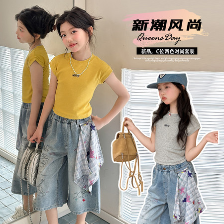 c*5将商品“Q1638款撒银七分牛仔裤套装”发布到淘宝